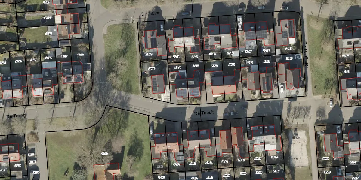 Het perceel waarop De Tapuit 4 staat heeft een oppervlakte van 233 m². Dit is een middelgroot perceel. De perceeloppervlakte wordt geregistreerd door het Kadaster. Gedetailleerde informatie over de maten van dit perceel kunt u vinden in het rapport Kadastrale kaart met maatvoering van De Tapuit 4.