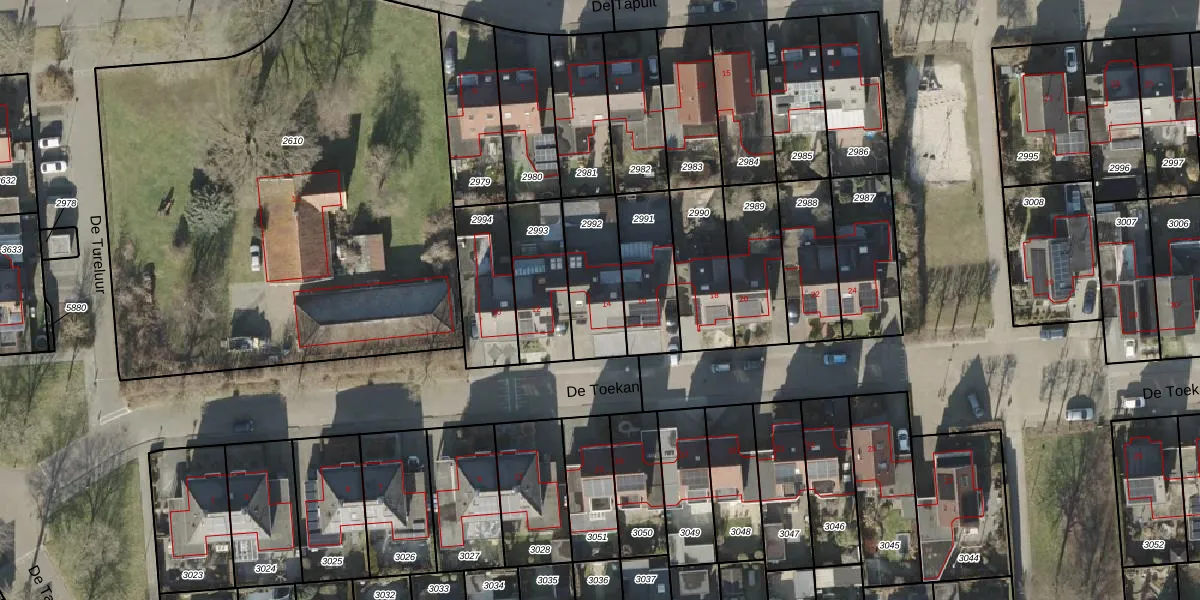 Het perceel waarop De Toekan 14 staat heeft een oppervlakte van 243 m². Dit is een middelgroot perceel. De perceeloppervlakte wordt geregistreerd door het Kadaster. Gedetailleerde informatie over de maten van dit perceel kunt u vinden in het rapport Kadastrale kaart met maatvoering van De Toekan 14.