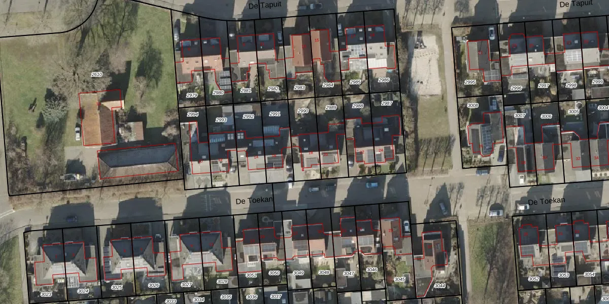 Gebruik de zoekbalk of klik op een perceel voor informatie over de adressen binnen dit perceel.