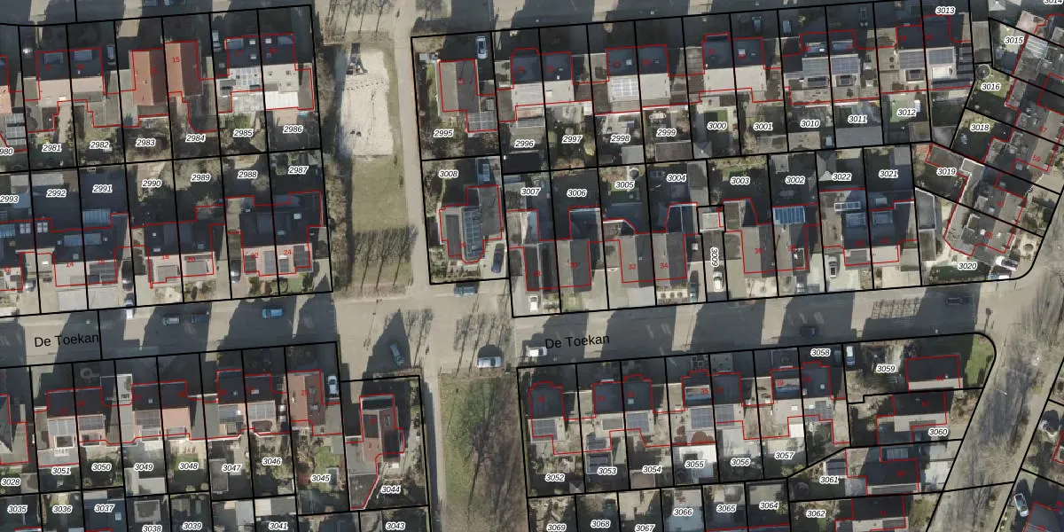 Het perceel waarop De Toekan 28 staat heeft een oppervlakte van 243 m². Dit is een middelgroot perceel. De perceeloppervlakte wordt geregistreerd door het Kadaster. Gedetailleerde informatie over de maten van dit perceel kunt u vinden in het rapport Kadastrale kaart met maatvoering van De Toekan 28.