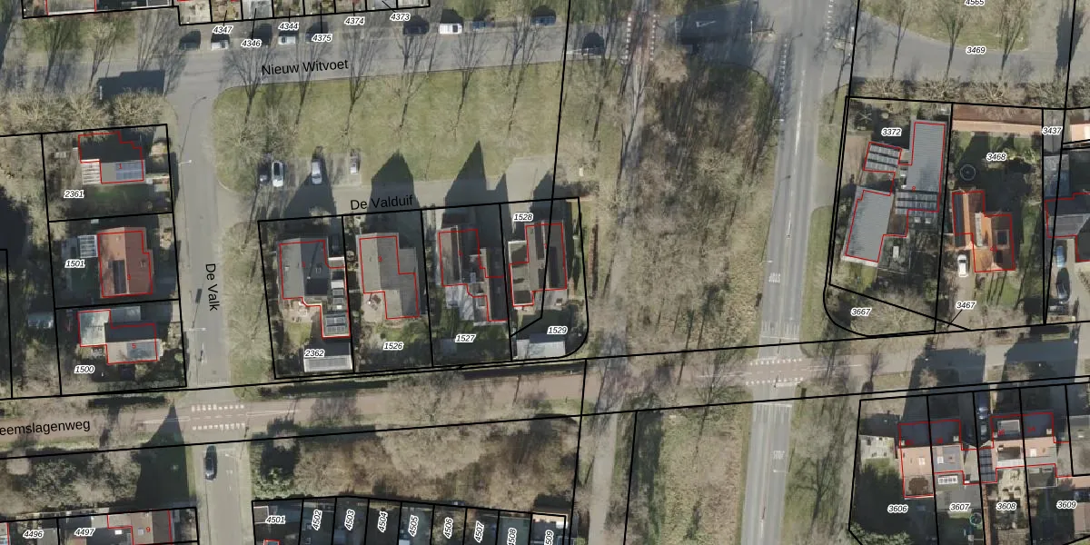 Gebruik de zoekbalk of klik op een perceel voor informatie over de adressen binnen dit perceel.