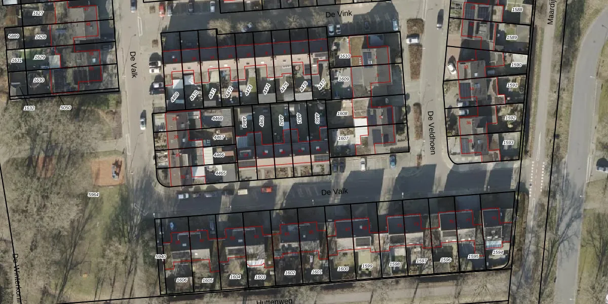 Het perceel waarop De Valk 40 staat heeft een oppervlakte van 149 m². Dit is een middelgroot perceel. De perceeloppervlakte wordt geregistreerd door het Kadaster. Gedetailleerde informatie over de maten van dit perceel kunt u vinden in het rapport Kadastrale kaart met maatvoering van De Valk 40.