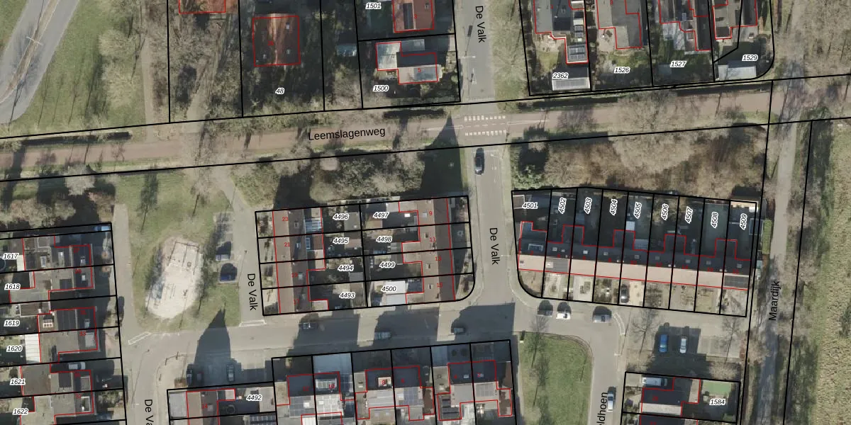 Het perceel waarop De Valk 9 staat heeft een oppervlakte van 157 m². Dit is een middelgroot perceel. De perceeloppervlakte wordt geregistreerd door het Kadaster. Gedetailleerde informatie over de maten van dit perceel kunt u vinden in het rapport Kadastrale kaart met maatvoering van De Valk 9.