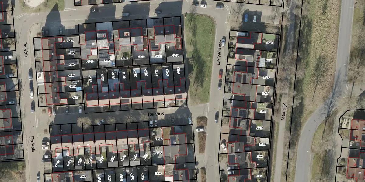Het perceel waarop De Vink 1 staat heeft een oppervlakte van 150 m². Dit is een middelgroot perceel. De perceeloppervlakte wordt geregistreerd door het Kadaster. Gedetailleerde informatie over de maten van dit perceel kunt u vinden in het rapport Kadastrale kaart met maatvoering van De Vink 1.
