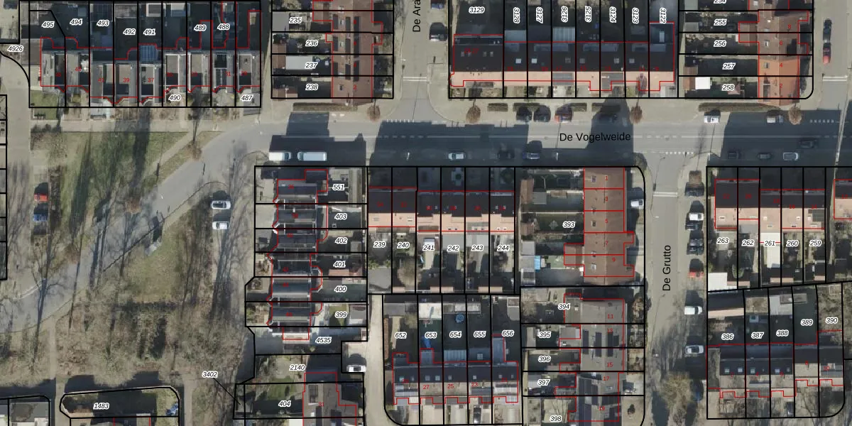 Het perceel waarop De Vogelweide 30 staat heeft een oppervlakte van 174 m². Dit is een middelgroot perceel. De perceeloppervlakte wordt geregistreerd door het Kadaster. Gedetailleerde informatie over de maten van dit perceel kunt u vinden in het rapport Kadastrale kaart met maatvoering van De Vogelweide 30.