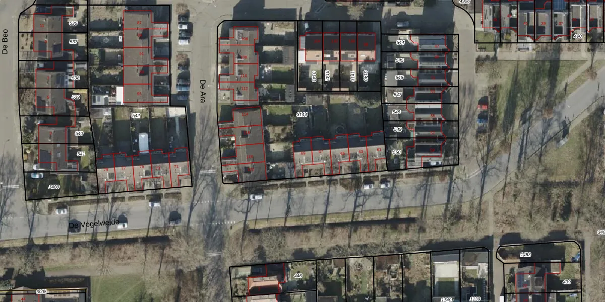 Het perceel waarop De Vogelweide 69 staat heeft een oppervlakte van 2181 m². Dit is een zeer groot perceel. De perceeloppervlakte wordt geregistreerd door het Kadaster. Gedetailleerde informatie over de maten van dit perceel kunt u vinden in het rapport Kadastrale kaart met maatvoering van De Vogelweide 69.
