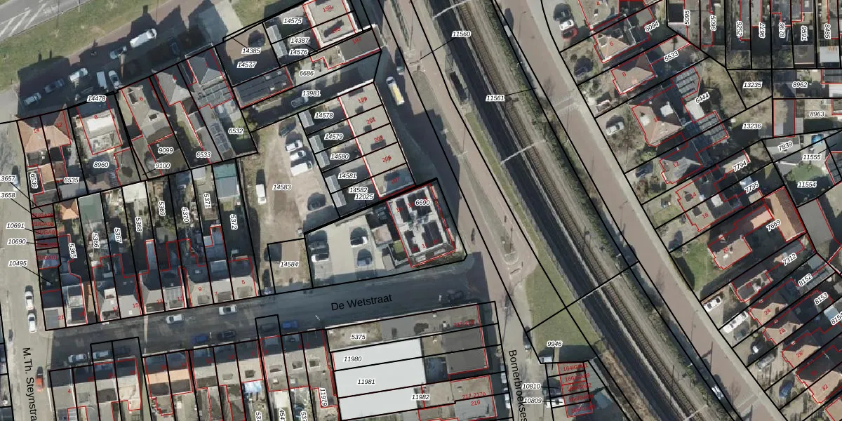 Het perceel waarop het adres ligt is AML01-H-6690. De afkorting 'AML01' staat voor kadastrale gemeente Ambt-Almelo. Het perceel is kleiner dan gemiddeld in Ambt-Almelo. Het perceel is 596 m² groot, terwijl het gemiddelde ligt op 2066,47 m². Het kleinste perceel in de kadastrale gemeente is 0 m² groot. De grootste perceeloppervlakte is 67,4 ha. Er zijn 6 adressen aanwezig op het perceel. De laatste wijziging in het de Basisregistratie Kadaster (BRK) was op 18-09-2025.