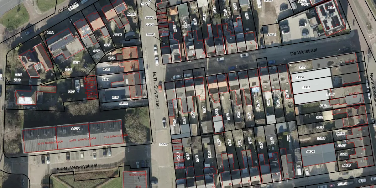 Gebruik de zoekbalk of klik op een perceel voor informatie over de adressen binnen dit perceel.