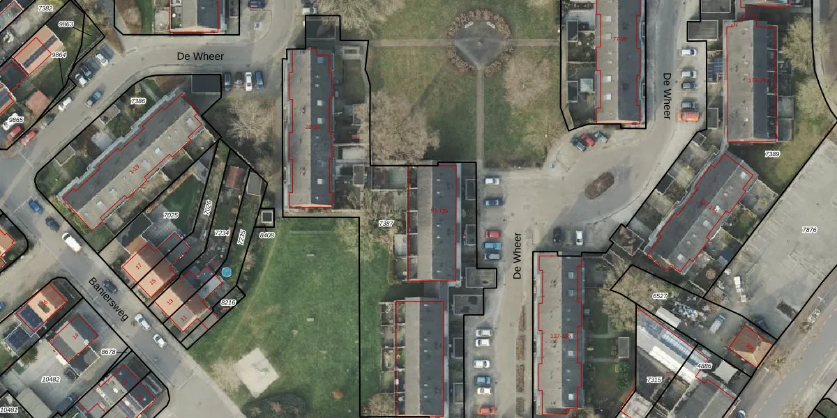 De Wheer 101 is gelegen op kadastraal perceel AML01B7387. Deze kadastrale aanduiding is uniek en wordt gebruikt door het Kadaster om eigendomsrechten en andere zakelijke rechten vast te leggen. Het perceel maakt onderdeel uit van de kadastrale gemeente Ambt-Almelo.