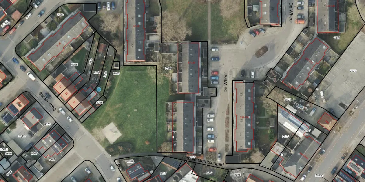 De Wheer 111 is gelegen op kadastraal perceel AML01B7387. Deze kadastrale aanduiding is uniek en wordt gebruikt door het Kadaster om eigendomsrechten en andere zakelijke rechten vast te leggen. Het perceel maakt onderdeel uit van de kadastrale gemeente Ambt-Almelo.