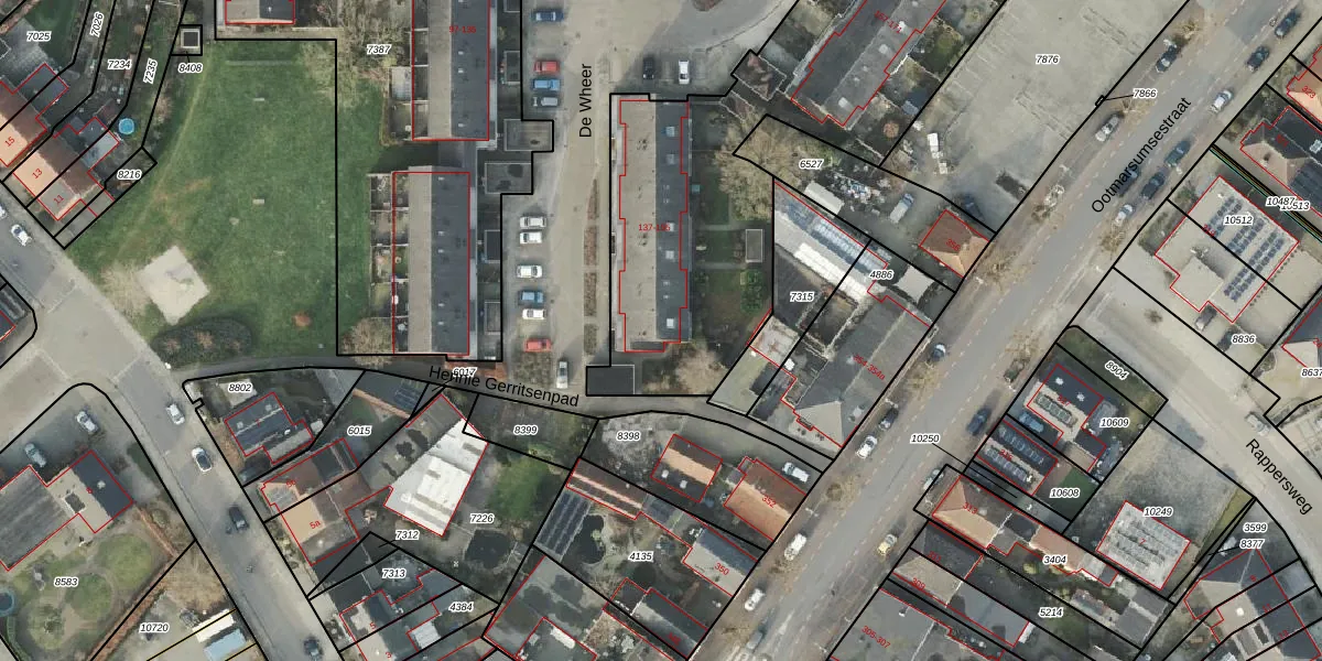 Het perceel waarop De Wheer 137 staat heeft een oppervlakte van 3579 m². Dit is een zeer groot perceel. De perceeloppervlakte wordt geregistreerd door het Kadaster. Gedetailleerde informatie over de maten van dit perceel kunt u vinden in het rapport Kadastrale kaart met maatvoering van De Wheer 137.