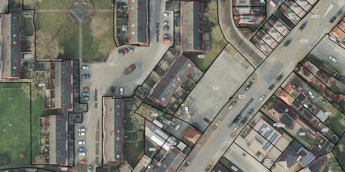 Het perceel waarop De Wheer 163 staat heeft een oppervlakte van 3579 m². Dit is een zeer groot perceel. De perceeloppervlakte wordt geregistreerd door het Kadaster. Gedetailleerde informatie over de maten van dit perceel kunt u vinden in het rapport Kadastrale kaart met maatvoering van De Wheer 163.