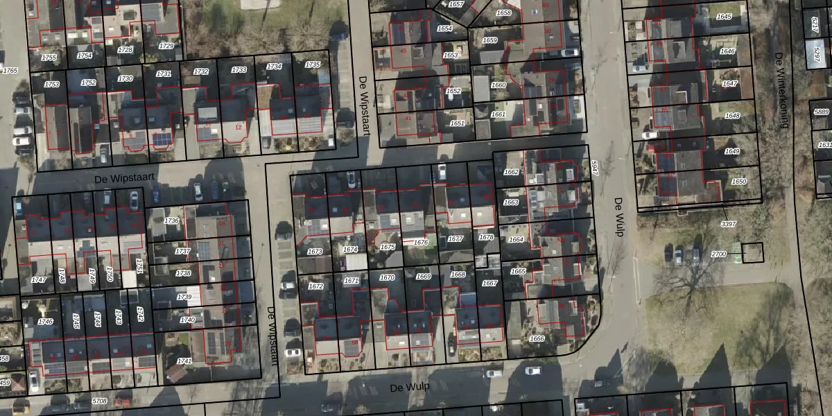 Gebruik de zoekbalk of klik op een perceel voor informatie over de adressen binnen dit perceel.