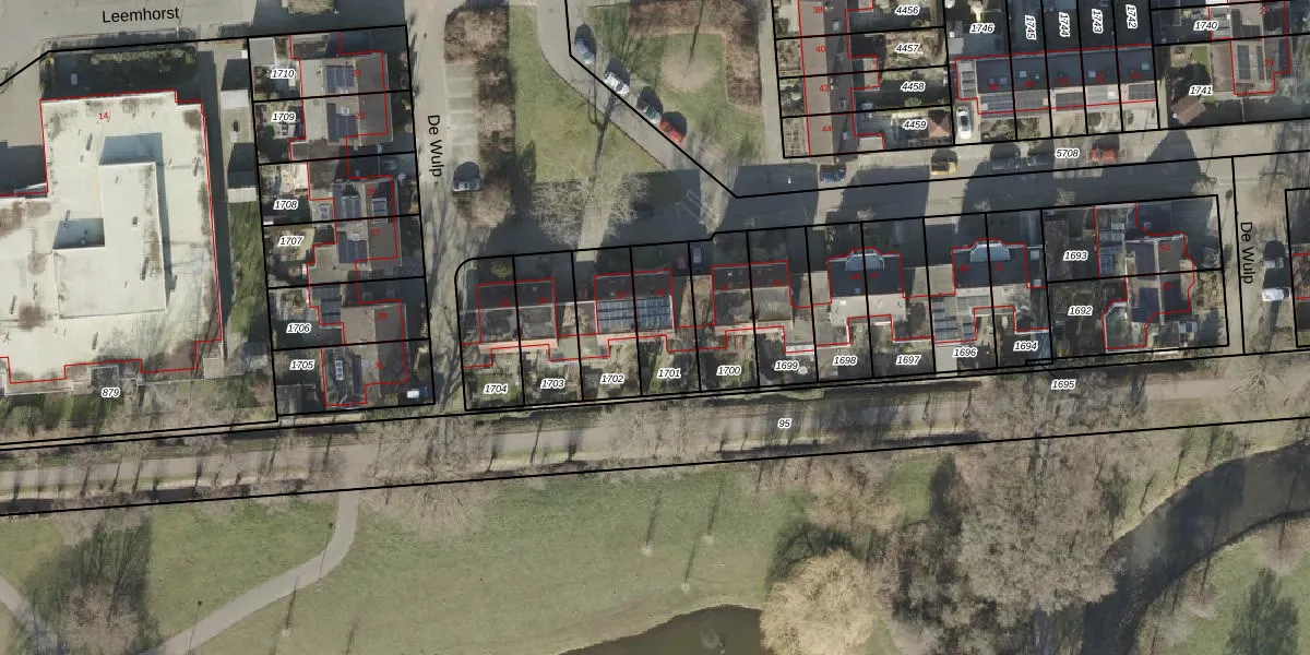 Het perceel waarop De Wulp 39 staat heeft een oppervlakte van 206 m². Dit is een middelgroot perceel. De perceeloppervlakte wordt geregistreerd door het Kadaster. Gedetailleerde informatie over de maten van dit perceel kunt u vinden in het rapport Kadastrale kaart met maatvoering van De Wulp 39.