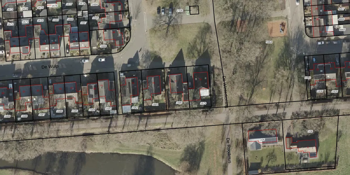 Het perceel waarop De Wulp 77 staat heeft een oppervlakte van 312 m². Dit is een groot perceel. De perceeloppervlakte wordt geregistreerd door het Kadaster. Gedetailleerde informatie over de maten van dit perceel kunt u vinden in het rapport Kadastrale kaart met maatvoering van De Wulp 77.