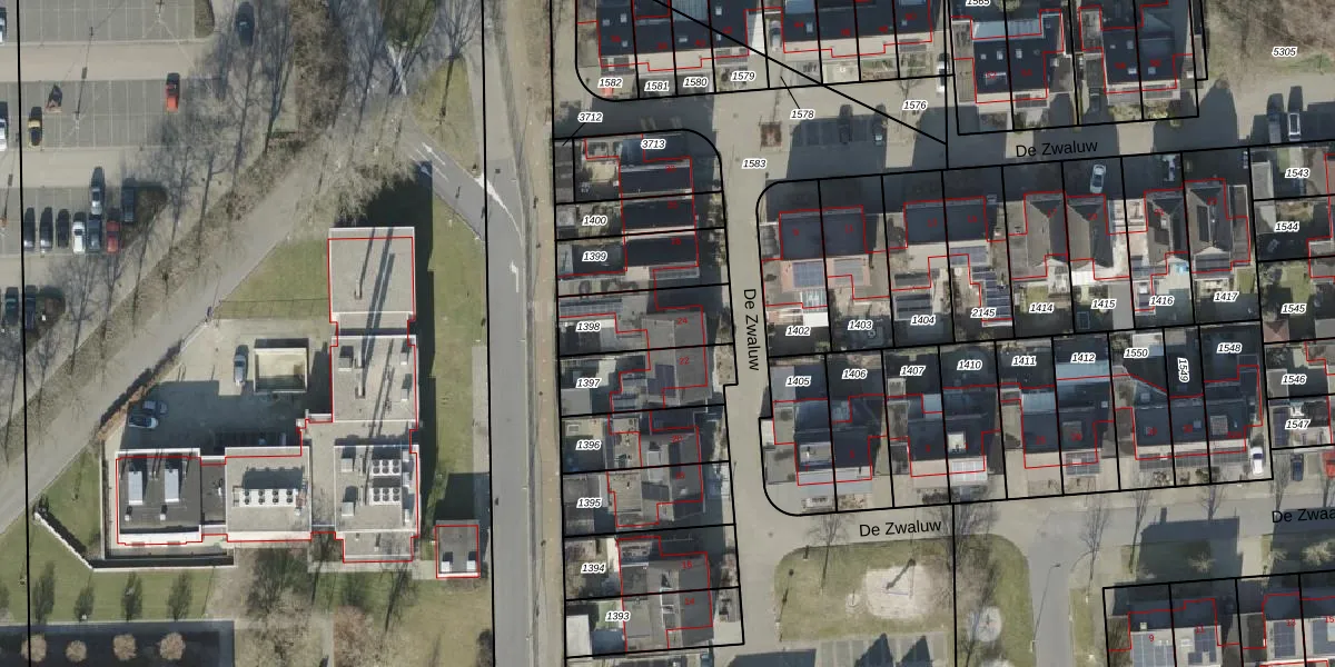 Gebruik de zoekbalk of klik op een perceel voor informatie over de adressen binnen dit perceel.