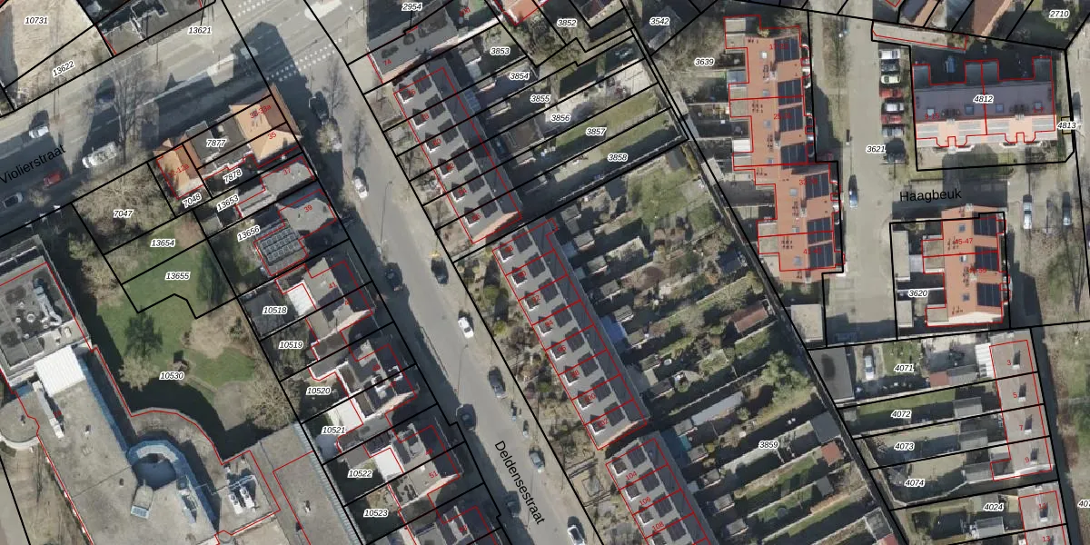 Het perceel waarop Deldensestraat 90 staat heeft een oppervlakte van 7647 m². Dit is een zeer groot perceel. De perceeloppervlakte wordt geregistreerd door het Kadaster. Gedetailleerde informatie over de maten van dit perceel kunt u vinden in het rapport Kadastrale kaart met maatvoering van Deldensestraat 90.