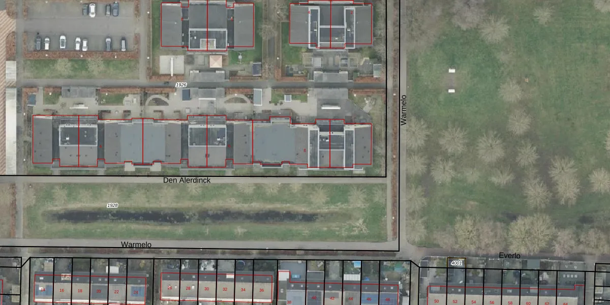 Het perceel waarop Den Alerdinck 8 staat heeft een oppervlakte van 9336 m². Dit is een zeer groot perceel. De perceeloppervlakte wordt geregistreerd door het Kadaster. Gedetailleerde informatie over de maten van dit perceel kunt u vinden in het rapport Kadastrale kaart met maatvoering van Den Alerdinck 8.
