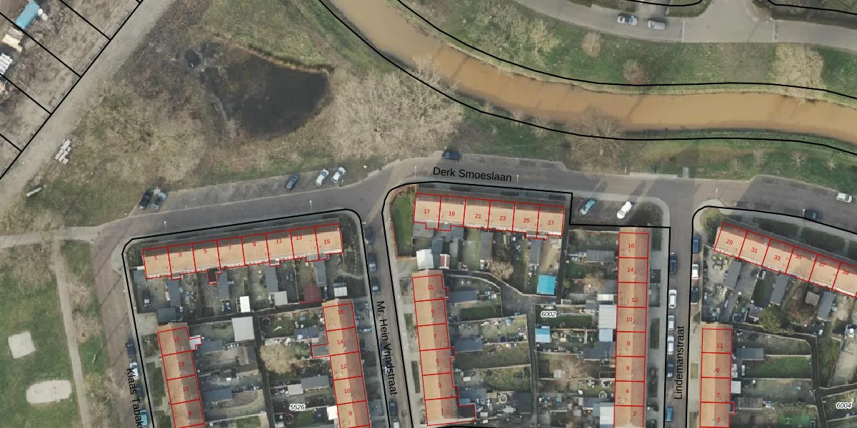 Het perceel waarop Derk Smoeslaan 17 staat heeft een oppervlakte van 3395 m². Dit is een zeer groot perceel. De perceeloppervlakte wordt geregistreerd door het Kadaster. Gedetailleerde informatie over de maten van dit perceel kunt u vinden in het rapport Kadastrale kaart met maatvoering van Derk Smoeslaan 17.