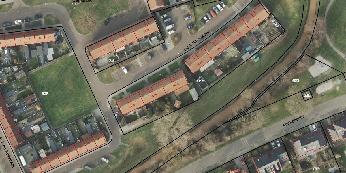 Het perceel waarop Derk Smoeslaan 28 staat heeft een oppervlakte van 2690 m². Dit is een zeer groot perceel. De perceeloppervlakte wordt geregistreerd door het Kadaster. Gedetailleerde informatie over de maten van dit perceel kunt u vinden in het rapport Kadastrale kaart met maatvoering van Derk Smoeslaan 28.
