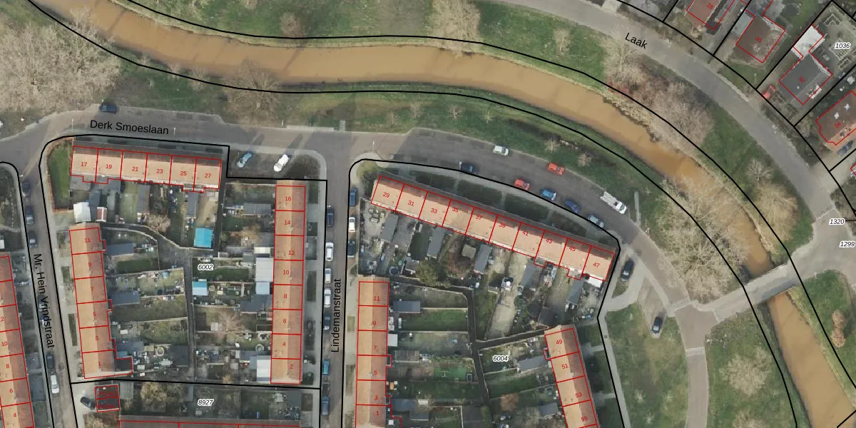 Derk Smoeslaan 33 is gelegen op kadastraal perceel AML01B6004. Deze kadastrale aanduiding is uniek en wordt gebruikt door het Kadaster om eigendomsrechten en andere zakelijke rechten vast te leggen. Het perceel maakt onderdeel uit van de kadastrale gemeente Ambt-Almelo.