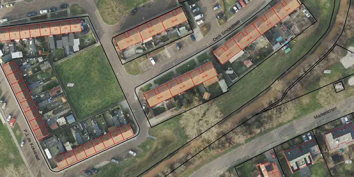 Derk Smoeslaan 36 is gelegen op kadastraal perceel AML01B8930. Deze kadastrale aanduiding is uniek en wordt gebruikt door het Kadaster om eigendomsrechten en andere zakelijke rechten vast te leggen. Het perceel maakt onderdeel uit van de kadastrale gemeente Ambt-Almelo.