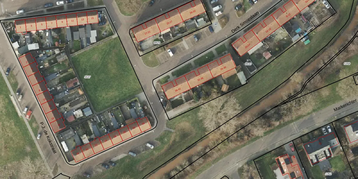 Het perceel waarop Derk Smoeslaan 40 staat heeft een oppervlakte van 2690 m². Dit is een zeer groot perceel. De perceeloppervlakte wordt geregistreerd door het Kadaster. Gedetailleerde informatie over de maten van dit perceel kunt u vinden in het rapport Kadastrale kaart met maatvoering van Derk Smoeslaan 40.