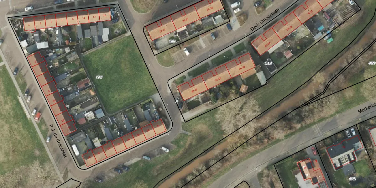 Het perceel waarop Derk Smoeslaan 42 staat heeft een oppervlakte van 2690 m². Dit is een zeer groot perceel. De perceeloppervlakte wordt geregistreerd door het Kadaster. Gedetailleerde informatie over de maten van dit perceel kunt u vinden in het rapport Kadastrale kaart met maatvoering van Derk Smoeslaan 42.