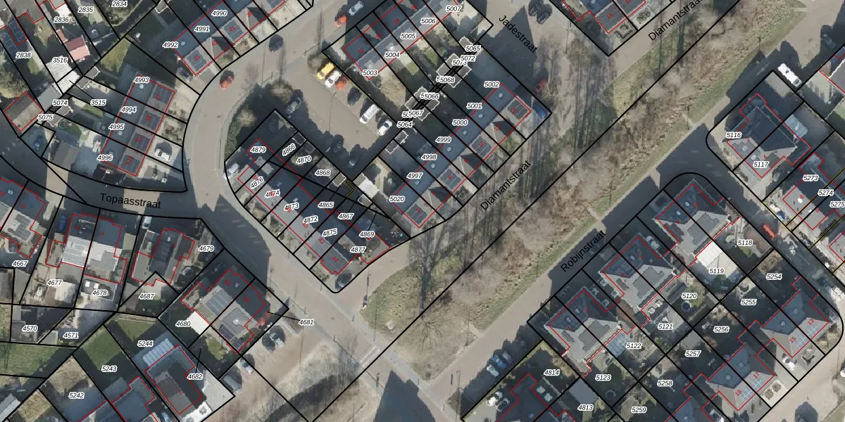 Het perceel waarop Diamantstraat 2 staat heeft een oppervlakte van 187 m². Dit is een middelgroot perceel. De perceeloppervlakte wordt geregistreerd door het Kadaster. Gedetailleerde informatie over de maten van dit perceel kunt u vinden in het rapport Kadastrale kaart met maatvoering van Diamantstraat 2.