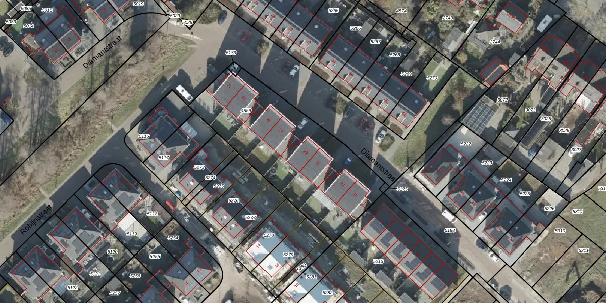 Het perceel waarop Diamantstraat 29 staat heeft een oppervlakte van 1580 m². Dit is een zeer groot perceel. De perceeloppervlakte wordt geregistreerd door het Kadaster. Gedetailleerde informatie over de maten van dit perceel kunt u vinden in het rapport Kadastrale kaart met maatvoering van Diamantstraat 29.