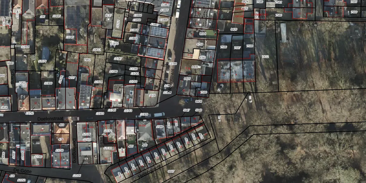 Doelenstraat 32 is gelegen op kadastraal perceel AML01B8405. Deze kadastrale aanduiding is uniek en wordt gebruikt door het Kadaster om eigendomsrechten en andere zakelijke rechten vast te leggen. Het perceel maakt onderdeel uit van de kadastrale gemeente Ambt-Almelo.