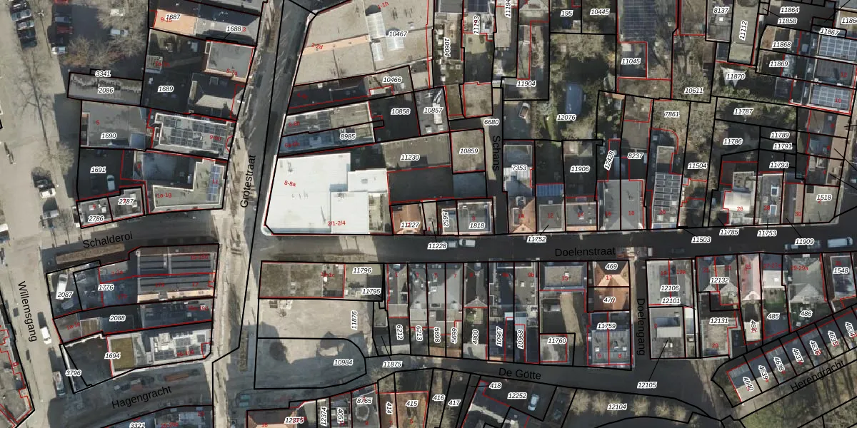 Het perceel waarop Doelenstraat 4 staat heeft een oppervlakte van 27 m². Dit is een klein perceel. De perceeloppervlakte wordt geregistreerd door het Kadaster. Gedetailleerde informatie over de maten van dit perceel kunt u vinden in het rapport Kadastrale kaart met maatvoering van Doelenstraat 4.