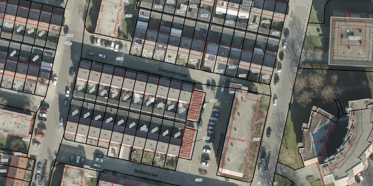Donizettistraat 2 is gelegen op kadastraal perceel AML01I4099. Deze kadastrale aanduiding is uniek en wordt gebruikt door het Kadaster om eigendomsrechten en andere zakelijke rechten vast te leggen. Het perceel maakt onderdeel uit van de kadastrale gemeente Ambt-Almelo.