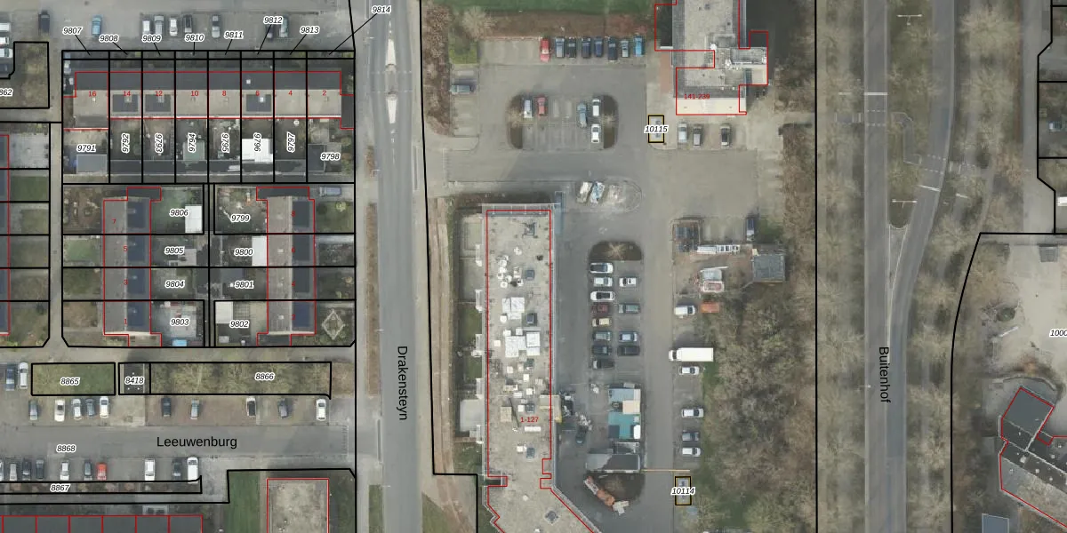 Het perceel waarop Drakensteyn 19 staat heeft een oppervlakte van 2,9 ha. Dit is een zeer groot perceel. De perceeloppervlakte wordt geregistreerd door het Kadaster. Gedetailleerde informatie over de maten van dit perceel kunt u vinden in het rapport Kadastrale kaart met maatvoering van Drakensteyn 19.
