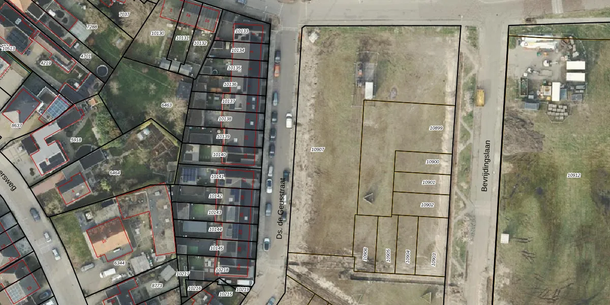 Het perceel waarop Ds. de Geusstraat 8 staat heeft een oppervlakte van 2392 m². Dit is een zeer groot perceel. De perceeloppervlakte wordt geregistreerd door het Kadaster. Gedetailleerde informatie over de maten van dit perceel kunt u vinden in het rapport Kadastrale kaart met maatvoering van Ds. de Geusstraat 8.