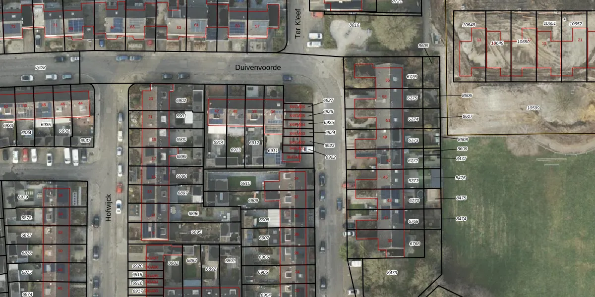 Gebruik de zoekbalk of klik op een perceel voor informatie over de adressen binnen dit perceel.