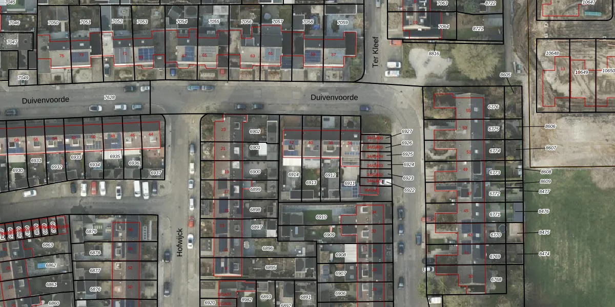 Het perceel waarop Duivenvoorde 40 staat heeft een oppervlakte van 177 m². Dit is een middelgroot perceel. De perceeloppervlakte wordt geregistreerd door het Kadaster. Gedetailleerde informatie over de maten van dit perceel kunt u vinden in het rapport Kadastrale kaart met maatvoering van Duivenvoorde 40.