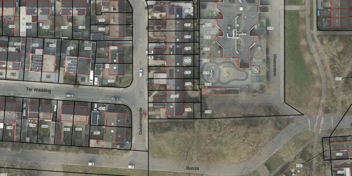 Gebruik de zoekbalk of klik op een perceel voor informatie over de adressen binnen dit perceel.