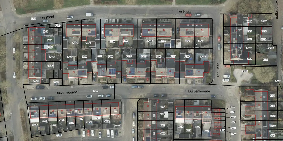 Het perceel waarop Duivenvoorde 65 staat heeft een oppervlakte van 253 m². Dit is een middelgroot perceel. De perceeloppervlakte wordt geregistreerd door het Kadaster. Gedetailleerde informatie over de maten van dit perceel kunt u vinden in het rapport Kadastrale kaart met maatvoering van Duivenvoorde 65.