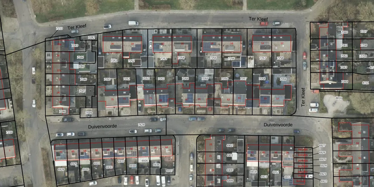 Gebruik de zoekbalk of klik op een perceel voor informatie over de adressen binnen dit perceel.