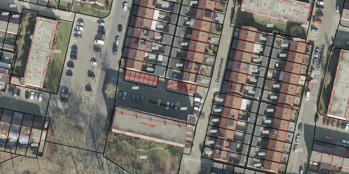 Duparcstraat 2-GA05 is gelegen op kadastraal perceel AML01I3391. Deze kadastrale aanduiding is uniek en wordt gebruikt door het Kadaster om eigendomsrechten en andere zakelijke rechten vast te leggen. Het perceel maakt onderdeel uit van de kadastrale gemeente Ambt-Almelo.