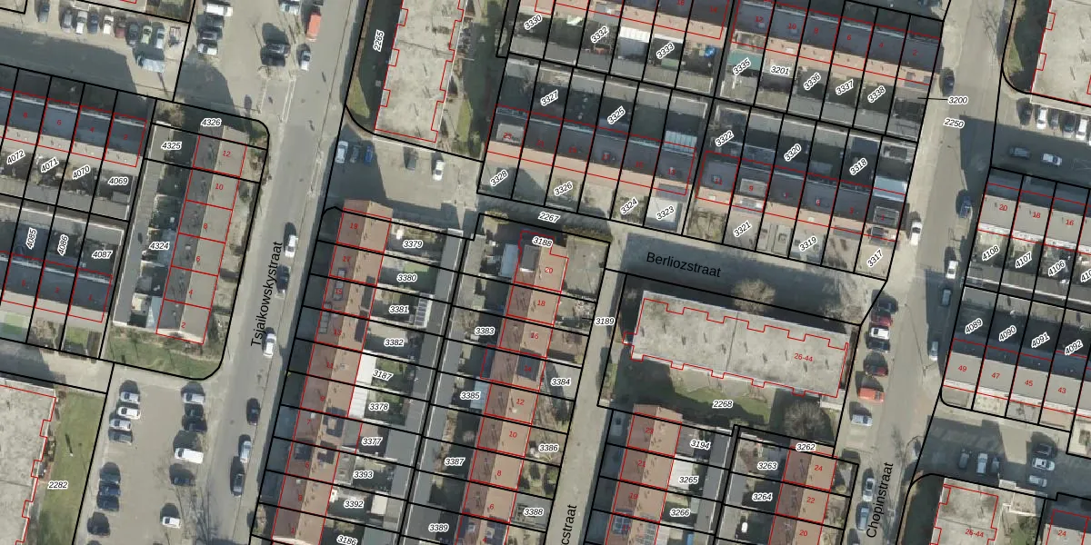 Gebruik de zoekbalk of klik op een perceel voor informatie over de adressen binnen dit perceel.