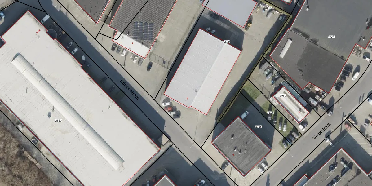 Het perceel waarop Edisonstraat 6 staat heeft een oppervlakte van 3115 m². Dit is een zeer groot perceel. De perceeloppervlakte wordt geregistreerd door het Kadaster. Gedetailleerde informatie over de maten van dit perceel kunt u vinden in het rapport Kadastrale kaart met maatvoering van Edisonstraat 6.