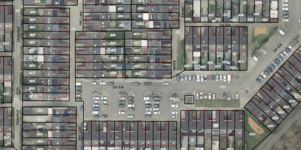 Het perceel waarop Eerde 27 staat heeft een oppervlakte van 167 m². Dit is een middelgroot perceel. De perceeloppervlakte wordt geregistreerd door het Kadaster. Gedetailleerde informatie over de maten van dit perceel kunt u vinden in het rapport Kadastrale kaart met maatvoering van Eerde 27.