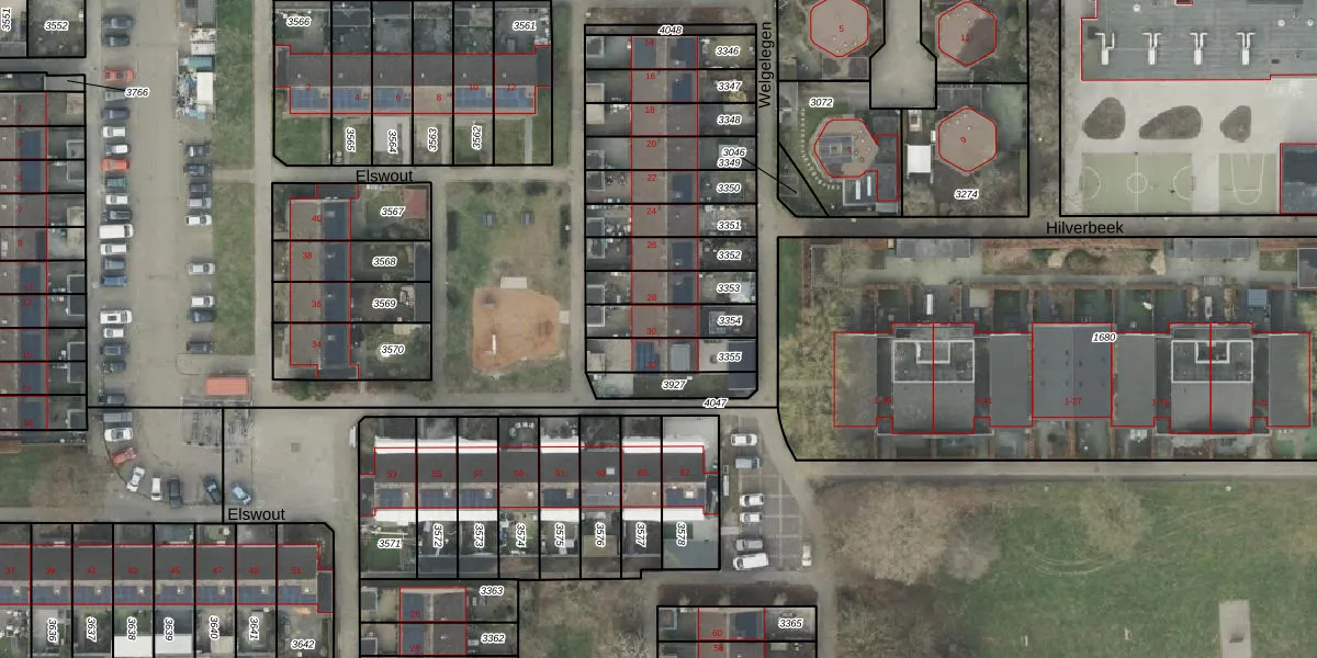 Gebruik de zoekbalk of klik op een perceel voor informatie over de adressen binnen dit perceel.