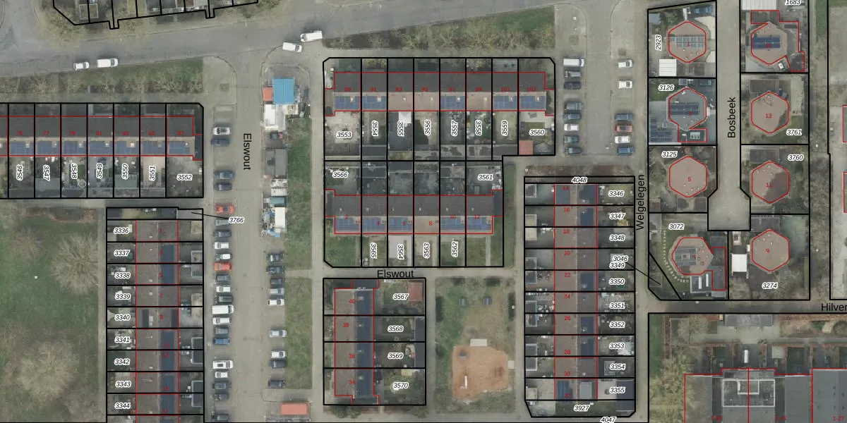 Gebruik de zoekbalk of klik op een perceel voor informatie over de adressen binnen dit perceel.
