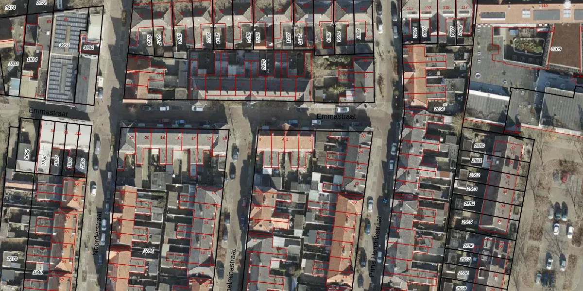 Het perceel waarop Emmastraat 4 staat heeft een oppervlakte van 3508 m². Dit is een zeer groot perceel. De perceeloppervlakte wordt geregistreerd door het Kadaster. Gedetailleerde informatie over de maten van dit perceel kunt u vinden in het rapport Kadastrale kaart met maatvoering van Emmastraat 4.