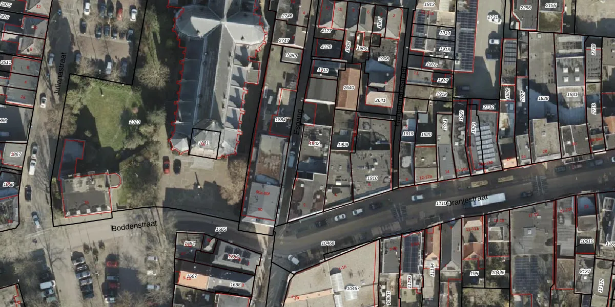 Het adres ligt op het perceel AML01-K-1902, dat zich in de kadastrale gemeente Ambt-Almelo bevindt. Het perceel is 454 m² groot. Dat is kleiner dan de gemiddelde perceeloppervlakte in Ambt-Almelo, dat op 2069,47 m² ligt. De grootste perceeloppervlakte in de kadastrale gemeente is 67,4 ha. De kleinste oppervlakte bedraagt 0 m². Er zijn 10 adressen aanwezig op het perceel. De huidige grenzen van het perceel zijn digitaal in de Basisregistratie Kadaster (BRK) geregistreerd op 27-01-2003.
