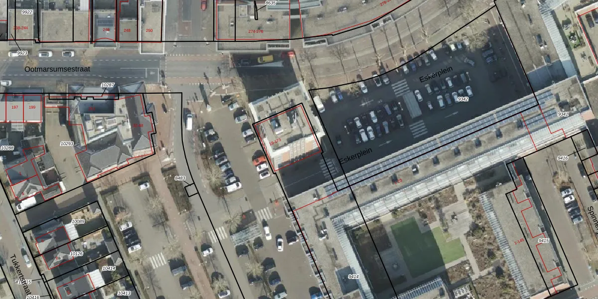 Het perceel waarop Eskerplein 159 staat heeft een oppervlakte van 1978 m². Dit is een zeer groot perceel. De perceeloppervlakte wordt geregistreerd door het Kadaster. Gedetailleerde informatie over de maten van dit perceel kunt u vinden in het rapport Kadastrale kaart met maatvoering van Eskerplein 159.