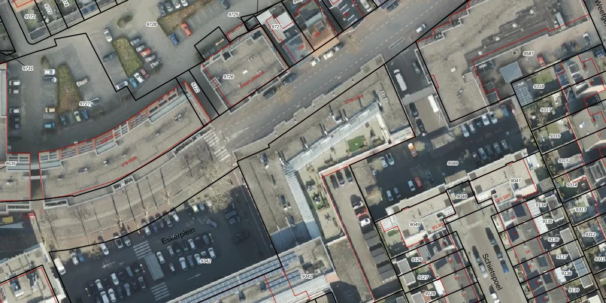 Het perceel waarop Eskerplein 58 staat heeft een oppervlakte van 5770 m². Dit is een zeer groot perceel. De perceeloppervlakte wordt geregistreerd door het Kadaster. Gedetailleerde informatie over de maten van dit perceel kunt u vinden in het rapport Kadastrale kaart met maatvoering van Eskerplein 58.